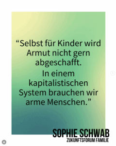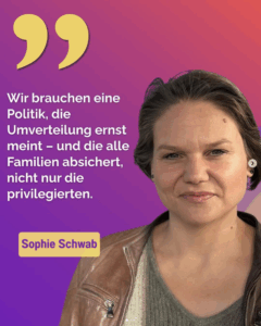 U.a. mit Sophie Schwab, ZFF-Geschäftsführerin, richtet die Folge den Blick auf die tief verwurzelte soziale Schieflage. Zugleich entwirft sie eine Vision davon, wie eine Gesellschaft aussehen könnte, die die Rechte von Kindern wirklich ernst nimmt und Familien solidarisch unterstützt.